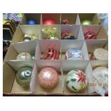 Plastic box of older Christmas bulbs