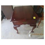 Mahogany wood end table with Queen Ann legs