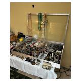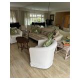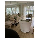 Home is overloaded with jewelry, bags, clothes, shoes, perfume, decorative accent pieces, collectibles, kitware, lots of bar needs, fringed sofa, pair of swivel chairs, corner curio, dining room chairs, sectional, console table, coffee & end tables, pair of tufted leather chairs, file cabinets, office furniture, wine fridge, Kranich & Bach baby grand piano, master bedroom set with armoire & other bedroom sets, 50's red table, wicker desk, toys, art, assorted mirrors, rugs, lots of table linens, Singer featherweight, outdoor wicker & glass top oval table with 6 chairs, wrought iron outdoor furniture, planters, statuary & loads more! A great way to end another year of fabulous Tag Sales! Come shop! |