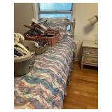 Rattan MCM furniture, including sofa, chairs, tables, MCM dresser, china closet, coat rack, umbrella stand, fixture & more, John Widdicomb bedroom set, pair of swivel chairs, tufted print couch, end tables, brass lamps, silver sofa & loveseat, Thomasville bedroom set including pair of beds, dresser & mirror, desk with hutch, pair of end tables & matching lamps, assorted chairs, lamps, tables, Lladros, Christmas, vintage kitware, electronics, Hummels, tools, tool chest & more! Unfortunately the homeowner gave the office furniture and shelves to the new homeowner and is no longer for sale. We apologize for any inconvenience that this may cause |