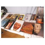 Antique furniture, Egyptian Art, Clocks, King Tut Throne Chair, Life-Size Sarcophagus, DVD's, Wedgewood China, Huge Victorian Doll House. |