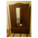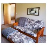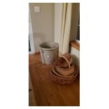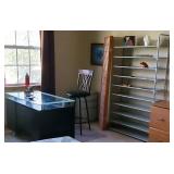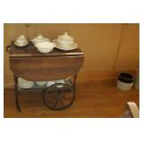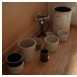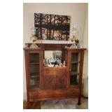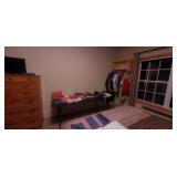 Furniture : To keep you warm in style we have a beautiful Electric Media Fireplace (SWF-881481-70), we have a stunning antique curio/hutch, many crocks ranging in size up to 15 gal. Including ones from Robinson Ramsbottom Monmouth, Il., a large armoire with a mirror and lots of hanging room with a drawer across the bottom. There is a beautiful antique tea cart, a school desk, 2 queen beds, a twin bed with bookcase headboard and under bed storage, 2 wood tone file 2 drawer cabinets, Bamboo living room set which contains a chair, ottoman, a sofa, a glass top coffee table and a glass top side table, a draw leaf table that seats 4-6 with 4 chairs and 3 pieces of white iron patio furniture. 2 handmade side storage cabinets, a beautiful gray 4 piece sectional sofa, many rugs all in excellent condition, an antique sewing rocker, a glass top black tone desk, a futon with ottoman, multiple bookcases and a beautiful large wicker chest.