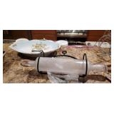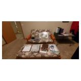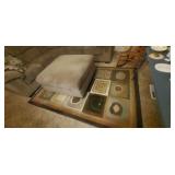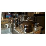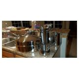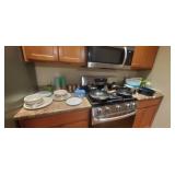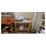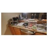 Kitchen: We have a set of 90+ pieces of Homer Laughlin’s Virginia Rose pattern (12 place setting), a lovely Oneida roaster and many other stainless steel pans and steamers. Glasses from the 2009 Star Trek movie. Original soda stream Jet and 4 bottles (this machine has a large sized CO2 tank in it but will take both large tank or small), Grill basket for vegetables, large stainless silverware set, a crock pot, a kitchen com-poster with a filter for smell, multiple corelle dishes, some vintage tupperware glasses, a pasta maker and brand new glass set still in box.