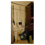 Misc: An antique sewing box, 2 vintage scales, multiple dog crates in various sizes, an antique #7 iron, a twin size weighted blanket and washable cover, a Bali warrior wall hanging, vintage newspapers and many many vintage Life Magazines with many historical events! Many Russian wood toys and dolls, Fabric, crafts and raw wool! We have a folding aluminum compact ladder, a Eureka upright (royal) vacuum, a car top rails, we have many tools (screwdrivers, axes, hammers, block plane, battery charger, 2 drills, tin snips) various types of shovels and shop lights, we have a grill, many vintage glass rolling pins, some are jadeite with advertising, cobalt, red and clear, as well as a rack to put them on. Many Framed nature photos, vintage record guild records, a short tube Newtonian Equatorial Reflector Telescope F500XD114MM, a portable dance floor, vintage ladies hats as well as an eclectic grouping of name brand clothes.