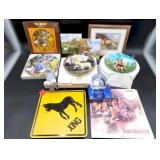 Immerge into this beautiful world of the farm where you will find so many things: Farming and garden: Cub Cadet XT1 LT42 riding lawn tractor and attachments bulk of horse harness and studs, horse masks, book about Arabian costumes, fabric and bells, Horseback covers and accessories, big green cattle scratcher, cattle feeders, stock tanks, wheelbarrows, sawhorses, hand tools, vintage horse buggy, Craftsman lawn tractor/trailer, BT Lifter hydraulic Pallet jack 5000 Lb capacity Model L2300U, Jergensen wood clamps, bunch of wires, drill press car ramps and dollies, Central Pneumatic 6 gal. 1.5 HP 150 PSI Professional Air Compressor and a large Coleman Powermate 6.5 hp 60 gallon air compressor Model CL6506016, Larin (RBV-5) 5" Multi-function Vise, chicken incubator, Craftsman 1450 Series Leafwacker Chipper / Shredder, Horse Saddle, lots of metal shelving units and more Collectibles: FENTON ornaments and vase, collectable GOATS, DONKEYS and other animals, SCHMID Lowell compositions and figurines, HUMMEL, LALIQUE, BING & GRONDAHL collector plates, beautiful vintage ornaments, collectible vintage die cast cars, HAPPY MEAL and TYs, BREYER Horses, Rare Vintage West German BMF Glass & Pewter Lid Goat Head Beer Stein, WALLENDORF porcelain goat figurine, collector pins, antique opera binoqulars and more Vintage kids toys: mini disney toys, Little Tikes and Fisher Price, kids magazines and books, half size guitar and so much more!