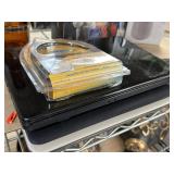 VTG GLASBAKE GREEN DAISY LIDDED CASSEROLE DISH |