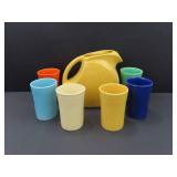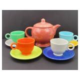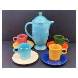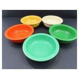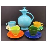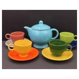 FIESTAWARE: 125+ Lots, Relish Tray, Disc Juice Pitcher w/ 6 Tumblers, Syrup Dispenser, 6 Nesting Bowl Set, Round Covered Casseroles, Carafe Pitcher w/ Lid, 4 Cups & Saucers, Bud Vase, Stick Handle Creamer and Bowl, Cream Soup Bowls, Stacking Refrigerator Bowls, Coffee Pot w/ 4 Cups & Saucers, Serving Spoon, Fork and Cake Server, Dessert Bowls, Teapot w/ 4 Teacups & Saucers, Salt N Pepper Shakers, Divided Plates, Juice Pitcher, 6 Tumblers, Plates, Candle Holders, Stick Handled Creamer & Sugar, Cream & Sugars, Ice Lip Pitcher, Gravy Boats, Serving Platters, Oval Platters, Plates, Oval Relish Trays, Bowls, 20+ Lots of 5-pc and 4-pc Table Settings;