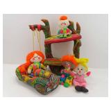 DOLLS: Barbies (30+ Dolls Happy Holidays, Jewel Jubilee, Victorian Elegance, Yuletide Romance, Sweet Valentine, Club Couture, Christian Dior, Giorgio Armani, Ralph Lauren, Solo in the Spot Light, Miss America, Air Force, Wedding Day, Badgley Mischka Bride, Ken Doll; Vintage Barbie & Ken Clothes, Bicycles, Boat, Accessories, The Barbie Game Queen of the Prom, Vintage Barbie Ponytail Case, Vintage Barbie and Midge Travel Pals); Cabbage Patch Dolls and Clothes; Brentwood Pillow Gange Policeman; Gabriel Patches McGee Dolls, Car, Tree House; Dolls, Houses, Clothes, Furniture; Marionette Puppet Doll;