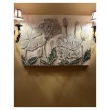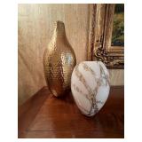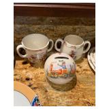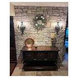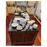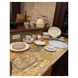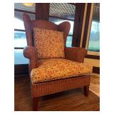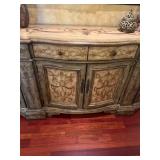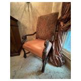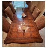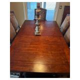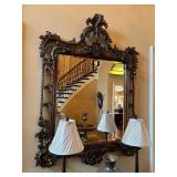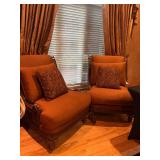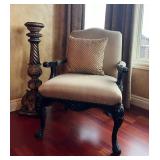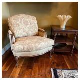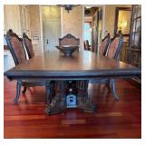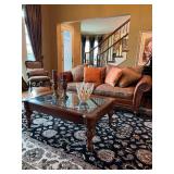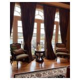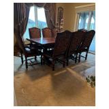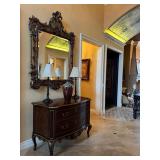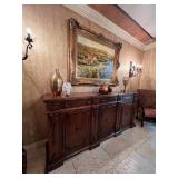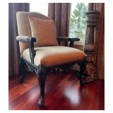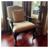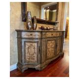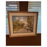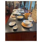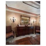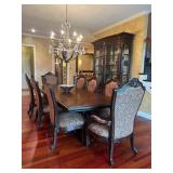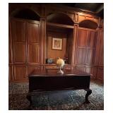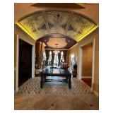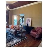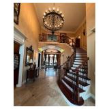 Main floor: marge, Carson club chairs,Furcoats, marge, Carson, dining room, table and chairs, Marge Carson sideboard, seven seasons hooker furniture painted buff, wood carved mirror, Michael Amini Windsor Court dining room table and chairs, Marge Carson lighted display cabinet, pillar, candleholders, Lexington Jacobean style chairs, KitchenAid mixer, Cuisinart,Blendtec blender, CUTCO knives, Mikasa China, Toscano Nunsmere battle armor sculpture, Henredon buffet,Pulaski pedestals, Ethan Allen Pratt Sofa, century furniture, armchairs, legacy, classic, accent table, Ethan, Allen, coffee table, Drexel Heritage side table, Ethan Allen tufted accent chair,Viviannu Serpentine council table, Hua Chen painting, Gray Benfield serigraph, A.R.T furniture Valencia, writing desk, hooker, furniture, clawfoot executive desk, Bastia Magai stereograph, Babe Ruth framed print, Robert Steffens, Mickey Mantle, print with 1958 World Series ticket.