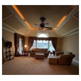 Basement: Leather in Lake Council cabinet, framed prints, West clocks clock, Dr. Ho's circulation promoter, Osaki OS pro massage chair, Noritake China, Herman coffee table, Bradington Young sofa, Vision elliptical, E Spirit treadmill, Arabia Finland pitcher, wicker woven wing back chair and ottoman, queen bed and nightstand, dressers, golf clubs, diffusers