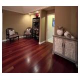 Second floor: Ethan Allen sleeper sofa, Ethan Allen plush Highback chair, men’s and women’s designer clothing, coach handbags, coach shoes, mini fridge, contemporary bedroom furniture, dining room table and chairs.
