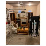 Garage: Westinghouse, 12,000 W generator, Toro, snowblower, paddle boards, Husqvarna, leaf blower, extension, cords, tools, hose reels, little giant ladders, Werner ladders, golf clubs, Ron for chair, dining table, treadmill, Ryobi, tree, trimmer, router and table, saw, racks and cabinets, miscellaneous, gardening, tools, wicker furniture.