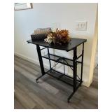 Crate & Barrell dining table & 8 leather & cane chairs, Crate and Barrell sectional, leather side chair, sofa & loveseat, assorted lamps & tables, shudder door black cabinet, sliding glass bookshelf, storage side table, rocking chair, daybed, signed prints, decorative accent pieces, designer bags, some costume jewelry, white wrought iron outdoor table & chairs, Imperial china, Christmas & other holiday items, exercise equipment & more! |