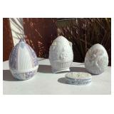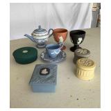 Two clients, one sale. Items include milk glass, Wedgwood (lots of colors), Lenox bells and more, Roseville, household goods, yard/garden items, rattan patio furniture, Christmas decor, LOTS of smalls perfect for Christmas stockings, crafting items - fabric, threads, polyfil, trim; Royal Doulton Toby mugs, porch swing, upright freezer and more. Some items came from a cat-friendly house.