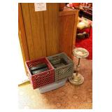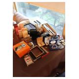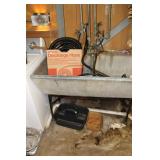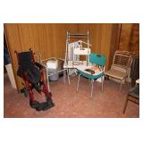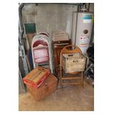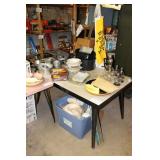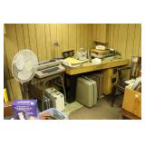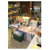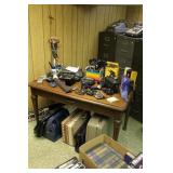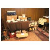 Basement Murphy-Miller Owensboro KY furniture in black leather and wood including the sofa, love seat, pair of large chairs, single ottoman Rustic look furniture including the pair of bookshelves, octagon end table, square end table Large round coffee table Old 7-drawer wood desk Interesting shape mid-century wood desk with glass top Vintage wood table with drawer Vintage kitchen table with pink Formica top, black metal hairpin legs (as-is) Vintage kitchen table with grey Formica top, black wood legs (as-is) Bookshelves Rocking chair with cane back and seat Vintage wood desk chair 3 vintage black muffin top bar stools Vintage trunk Vintage TV trays Wood TV stand Large green metal locker 3 metal file cabinets Typewriter table Card tables Assorted card table chairs Vintage red and black ceramic lamp Red and black hanging lamp Vintage black and green lazy susan Casserole dishes Bowls Pots and pans Electric knife Food processor Toasters Blender Bakeware Plastic containers Bistro 45 dinnerware sets Barware Vintage puzzles Polaroid Land Camera Spartus Full-Vue Camera Binoculars Vintage paper cutters Vintage adding machine Vintage Triner Airmail Accuracy scale Paymaster Ribbon Writer check imprinter IBM Selectric II typewriter Floor fans Vintage luggage Large selection of 45s Record albums Books VHS, DVD Vintage GE refrigerator Vintage Montgomery Ward freezer Eldercare items including a wheelchair, shower chair, commode Vintage Monark men's bicycle Kolcraft Deluxe High Chair Weber grill Wood ladders Garden tools Rakes, pitchfork, hoe, shovels Sprinklers Flower pots Toro Power Shovel Toro edger Black & Decker edger/trimmer Hedge trimmers Shop vacs Dremel table saw Black & Decker 7.2V drill Black & Decker 1/4 drill Black & Decker jig saw Black & Decker circular saw Wen soldering gun Electric welder ShopMate orbital sander Ratchet socket sets Lots of hand tools Nuts, bolts, screws Tap & die set Tool boxes in assorted sizes Wood tool box Various power cords Lots of light bulbs WD-40, Flat Fix, 3 in 1 oil, etc.