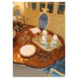 | This 5,600 square foot 4-bedroom home built in 1968 is a total testament to its era. The homeowners are both doctors with elegant taste. The lady of the house just loves the color royal blue and the theme is evident in the furniture and décor. There is vintage French Provincial furniture for the dining room and living room, a very large suite of Waterford Crystal, Colleen pattern, a gorgeous Baccarat decanter set, an amazing punch bowl set and much more. In addition, some 1980s era items including the swanky bar from Town House Interiors and artwork by Edna Hibel. The home is on the market and a quick sale is anticipated so everything must go! |