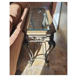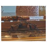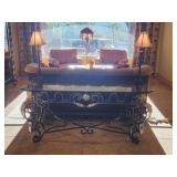 HIGH QUALITY WELL CARED FOR ITEMS LIVING ROOM King Hickory Recliner Living Room Chair - minor wear, nailhead trim accents, distressed leather, upholstered, very comfortable, high quality, 37"D x 30"W x 43"H ($1199) King Hickory 3 Piece Sectional Couch / Sofa - high quality, very comfortable, great condition, left to right 112" side 1 124" side 2 ($2400) King Hickory Large Throw / Accent Pillows SPI Home Bronze Dolphin Sculpture - great condition, 19.5"H ($345) 3 Piece Wrought Iron w/ Glass-top Living Room Furniture Set Inc. Entry / Sofa Table - 57.75"L x 20"D x 30.5"H ($245) Coffeetable - 40"L x 40"W x 20.25"H ($145) End Table - 29"L x 29"W x 25"H ($95) Wrought Iron Entry / Sofa Table w/ Black Marbletop & Tile Inlay - great condition, kept behind large sectional sofa out of sight, 56"L x 32.35"H x 18"D ($175) Handpainted Table & Wine Rack - 34.25"L x 26"W x 28.25"H ($89) Harper & Willow Brown Pair Countertop Lamp Shades - great condition, work great, 30"H ($89EA.) Large Area Rug By Nourison - 12' x 12.5' ($175) Home Decor Talavera Decor Dish Christmas Story Leg Lamp Misc. Tabletop Lamps Inc. Matching Pairs Large Picture Frame Framed Large Wall Art Wall Clocks Decorative Candle Holders Coaster Sets FORMAL SITTING AREA 2 Matching Living Room / Arm Chairs By National Contract Furnishings high quality, kept in formal sitting room so used rarely ($295EA.) River of Goods Downtown Abbey Grantham Grand Floor Lamp - brass finish, great condition, kept in formal sitting area, 66"H ($95) Raymond Waites By Lane Sofa / Couch On Castors - kept in formal sitting area, very clean, nailhead trim, paisley upholstery, 90"L x 40"D x 40"H ($595) Large Coffee-table w/ Wrought Iron - great condition, high quality, kept in formal sitting area, used sparingly, 50"L x 50"W x 22"H ($395) Large Curio / Display Cabinet - w/ lights, glass shelves, 72"W x 22"D x 106"H ($595) Large Armoire / Display Cabinet - w/ lights, glass shelves, very good condition, 50.5"W x 93"H x 22"D ($375) Area Rug by Kathy Ireland Home - kept in formal sitting area (very clean), 10' x 13' Victorian Pub Mirror - wood backed, very heavy, ornate frame. 36.25"H x 24.75"W ($125) Large Wrought Iron w/ Glasstop Entry / Sofa Table w/ Black w/ Gold Leaf Color Accents - kept in formal sitting area, great condition, 72"L x 29"D x 32.75"H ($475) Entry / Sofa Table Concrete Look - composite (not heavy), great condition, 48"W x 30.5"H x 14"D ($75) FORMAL DINING AREA 134 Piece Noritake "Rochelle Gold" #4796 (Japan) Bone China Set - classic, traditional pattern, great condition, dishwasher safe, designed for fine dining or everyday use ($995 SET) 13 - Lenox Firelight Gold Trim Crystal Wine Glasses - great condition, kept in formal dining area, 8" ($78SET) 11 - Lenox Firelight Gold Trim Crystal Wine Glasses - great condition, kept in formal dining area, 8.5" ($55SET) Michael Amini (Aico Amini Innovation) Sideboard / Wine Rack / Bar Back / Buffett Cabinet - kept in formal dining area, high quality, great condition, 65"L x 87"H x 20"D ($650) Gorgeous Walnut Dining Table w/ 2 Leaves - kept in formal dining area, great condition, 72"L without leaves, 101"L w/ leaves x 71"W ($895) 10 Custom Made Dining Chairs By Est Est (Scottsdale) - all captain's chairs, used in formal dining area, very clean, can be purchased as a lot of 4, 6 or all 10, 25"W x 30"D x 41"H ($195EA) Gorham Flatware - used in formal dining area, used sparingly, silver colored lined w./ gold color Wusthof Trident Steak Knife Set - in original cases, great condition, used sparingly ($185 SET or can be purchased in 3 lots) Things Remembered Stainless Steel Wedding Cake Knife Serving Set w/ Bridal Case Kitchen Linens Inc. Runners, Tableclothes, Placemats & Napkins Inc. By Wateford BAR AREA 3 Matching Robb & Stucky Bar Stools - swiveling, great condition, kept in bar area, used sparingly ($275EA) 4 Himalayan Salt Shot Glasses Riedel Wine Glasses Guinness Pints Quality Rocks Glasses Barware KITCHEN Rooster Decor 4 Matching Marge Carson (Robb & Stucky) Swivel Kitchen / Bar Stools - paid $10k new for the set, bar height, minor wear, wood, leather, upholstered in floral pattern 30"H x 42"W x 43"D ($775EA.) A.R.T. Furniture Round Kitchen Table w / Wood Top & Wrought Iron Legs - 53" diameter x 30.75"H, great condition, high quality ($550) A.R.T. Furniture 4 Dining Chairs - some minor wear, high quality, 45"H x 23"W x 25"D ($170EA.) Sur La Table Coffee Mugs Set (6) 2 Nambe Crystal Glass Oval Karim Rashid Motis Modern Design 6" Glass Tumbler Kitchen Linens Inc. Tablecloths, Runners & Cloth Napkins Inc. By Waterford 5 Piece Non Stick Copper Colored Inc. 3 Sauce Pans & 2 Frying Pans w/ Lids - great condition, w/ manual ($95 SET) Stainless Steel Trash Bin Stainless Steel Cuisinart Coffeemaker Keurig Coffeemaker Keurig Coffeepods Inc. Holiday Flavors Food Inc. Canned Kitchen Utensils Silverware Set Aluminum Serving Tray / Bowl Pieces Quality Paper Towel Holders Quality Glass Butter Dish Kitchen Food Scale Chef & Sommelier Drinking Glass Set Threshold Blue Dish Set Tupperware OFFICE Solid Wood Dark Mocha Colored Desk - 60"W x 32"D x 30.5"H ($185) Credenza / FIle Cabinet By Nailer Wise Top Stretcher - dark mocha colored, used in office, great condition, 68.5"L x 23"D x 32"H ($245) 2 Christy Bergere Matching Accent Chairs - used in office, used sparingly, 42"H x 28"W x 28"D ($195EA.) Distressed Leather Office Chair By Randall Allan ($95) Office Chair w/ Beautiful Pink Pattern - kept in laundry room nook, used sparingly, great condition, 40"H x 23"W x 26"D ($65) 16th Century Italian Replica Globe Bar - holds bottles & glasses, great condition ($115) Golf Club Shelf for golf shoe storage - kept in office, great condition ($95) Books (Newer) Office Supplies Canon Combo Pack ChromaLIfe 100+ 280PGBK XL/281 C,M,Y Printer Paper Stationary Camera Tripod Computer Speakers Wireless Charging LED Desk Light THEATRE ROOM Theatre Chairs - crescent shaped, connected, manual recline, very clean, used sparingly, great condition, 144