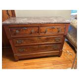 Marble Top Antique Cedar Chest with Brass Trim - Restored