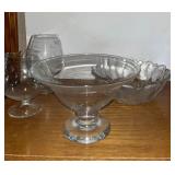Decorative Glass Bowl, 2 Lg Brandy Sniffers, and Stemware Glass Bowl