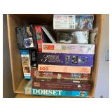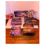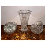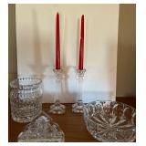 Glass Candy Dish, Cut Glass Candle Holders, Napkin Holder, and Cut Glass Bowl