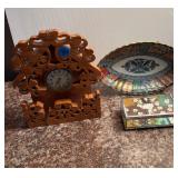 New Haven Wood Clock, Glass Trinket Box, RYO-Ho Late 20th Century Sanyo Imari Porcelain Serving Dish Hand Painted
