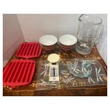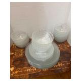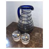 11" Glass Pitcher and 2-Sugar and Creamer Jars w/Lids