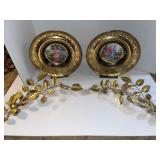 2 Regency Bone China Brass Plate and 2 Metal Leaf Swag