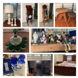 Clearing out a single-story house with combined items from two sisters who lived next door to each other. Items include 2 50" TVs, tools (yard and handy), Adirondack chairs, Cracker Barrel rockers, two porch swings (one on stand), HUGE staghorn fern, dining table/chairs, china cabinet, lots of holiday decor, large fountain, bedroom furniture and lots of household goodies. Please note, there's a strong odor in the house but most fabric items were stored in garage.