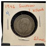 1946 SWEDEN 1 KRONA SILVER |
