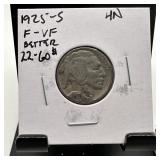 1925-S BUFFALO NICKEL KEY DATE $22-60 DEP ON GRADE |