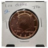 1OZ COPPER BULLION ROUND JFK |