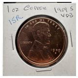 1OZ COPPER BULLION ROUND BUFFALO |