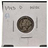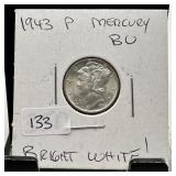 1943 MERCURY SILVER DIME HIGH GRADE BRILLIANT |