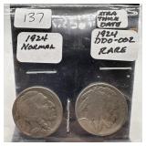 1924 & 1924 DDO-002 BUFFALO NICKEL PAIR |