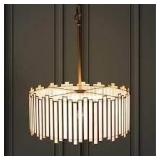 LNC 4-Light Copper Modern Drum Island Chandelier with White Stained Glass Shade Vintage Gold Accents