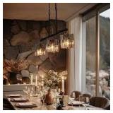 LNC Echonalyri Modern Island 3-Light Glam Matte Black and Plating Brass Chandelier with Geometric Textured Glass Shades