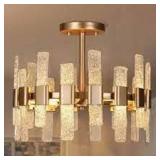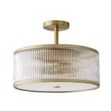Uolfin Modern Kitchen Chandelier Ceiling Light, 14.2 in. 3-Light Gold Drum Cylinder Semi-Flush Mount with Ice Glass Strips
