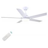 YUHAO 48 in. Indoor Integrated LED Matte White Ceiling Fan with Light Kit, 5 Blades and Remote Control