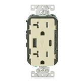 Leviton T5833-I Type A & Type-C USB In-Wall Charger with 20A Tamper-Resistant Outlet, USB Charger for Smartphones and Tablets. Not for Laptops, Ivory