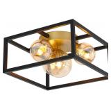 Griffintown 14 in. 4-Light Black and Gold Modern Farmhouse Flush Mount Ceiling Light Fixture for Kitchen or Bedroom