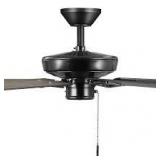 The 52 in. Bayfield ceiling fan from Hampton Bay offers an easy way to enhance your indoor living space. The stark matte black finish is complemented by 5 reversible blades in matte black and pecan heather finishes to blend with your decor. Built for year-round comfort, the Bayfield boasts a quiet 3-speed reversible motor and is controlled via the pull chain to operate the fan's 3 speeds. This versatile fan is light kit adaptable and compatible with universal remote controls or wall switches to give you a variety of installation options.
