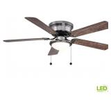 Cool off your space with this Hugger 52 in. LED Gunmetal Ceiling Fan. The fan features five reversible seasoned wood/espresso finish blades, frosted opal glass and a reversible motor. Install this fan in a bedroom, living room, or family room. Along with a farmhouse look, this fan boasts a pull chain operation, close to ceiling mounting design and a dome light fixture. Ideal for rooms up to 18 ft. x 18 ft., this fan operates with an air flow of 3,256 CFM.