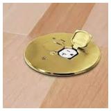 NEWHOUSE ELECTRIC Low-Profile Round Floor Box Outlet Cover with 15A TR Duplex Receptacle and 2 Lift Lids, Brass