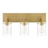 Add a touch of contemporary industrial style to your bathroom with the Regan 3-light brushed gold vanity light. This timeless fixture features a sleek brushed gold finish paired with 3 cylindrical clear glass shades that gently diffuse light when the fixture is illuminated. Pick up coordinating pieces from the Regan collection to complete the look.
