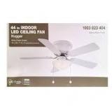Use this low-profile Hugger 44 in. LED Matte White ceiling fan for flush-mount installations when ceiling height is of concern. Featuring reversible blades, the fan's universal white finish is complemented with distressed gray and white blade finishes. The opal frosted shatter resistant PC shade dome light fixture includes a 9-Watt LED bulb that provides bright illumination. With a high-performance motor for powerful, yet quiet operation and 44 in. blades, this fan is ideal for most interior rooms up to 8 ft. x 8 ft.