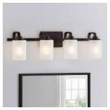 This 4-Light Oil Rubbed Bronze Vanity from Hampton Bay has a sleek design with beautifully constructed clean lines. Perfect for complementing many decor styles, this vanity features a refreshing oil rubbed bronze finish and linen glass shades for rich and warm illumination. Perfect for giving your bath or powder room an elegant upgrade, pair with other bronze-pieces for a sophisticated look you will enjoy for-years to come.