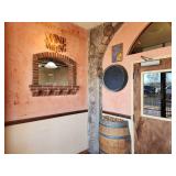 Contents of Entry, Half Decorative Whiskey Barrels, Chalkboard