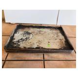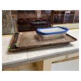 Three Cookie Sheets, One Drain Cookie Sheet and Two Glass Baking Dishes