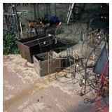 Beautiful antique beds, antique dressers, iron beds, side by side secretary, Chinese wedding bed, credenza, oak king bed, large oak dresser & nightstands, several antique sewing machines incl Minnesota treadle & Singer featherweight, 6 antique trunks, antique desks, lots of frames, Lalique turtle and other glass animal figurines, jewelry, pocket knives, lots of dishes - several sets of china- Mikasa Far East, Kutani Bird and Ribbon Pink, Bavaria china, large collection of Blue Danube, Carnival glass, Depression glass, Tiara Sandwich, Fostoria Colony, Princess House, and misc glassware, Frankoma pottery, Homer Laughlin, lamps, sofa, chairs, recliner, Mahogany end table, kitchen table & 4 chairs, Oak table & 8 chairs, drop leaf table & 4 chairs, sideboard, small china hutch, LOTS of kitchen items - Frigidaire refrigerator, countertop ice maker, small appliances, small chest freezer, pots & pans, cast iron, utensils & knives, Pyrex clear and lots of bake ware, Pampered Chef, Pioneer Woman, HUGE cast iron cauldron, insulators, collectible and usable canning jars, 1 small & 2 large safes, books, LPs, CDs, console stereo, NordicTrack exercise bike, boxing heavy bag and speed bag, quilts, artwork, paintings & prints, several antique & vintage school desks, children's furniture & play furniture, dolls, pool table from Dinuba pool hall, lots of old license plates, patio table & chair sets, plants & plant stands, Monaco Knight 32' (or 34’) Motorhome, Suzuki bike, fishing poles, golf clubs, LOTS of tools, ladders, tool chests, roofing tiles, fire hydrant, lots of furniture and parts for refinishing/repurposing.