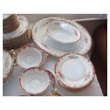 Rose medallion platter/drain dish in a fitted stand, 2 fur coats, leather sofa, nice patio set tile table, rattan etegeres, costume & gold jewelry, Tommy Bahama style bedroom sofa, Kutani, over 150 tobacco jars, antique copper, modern bar chairs, hand bags, pair of love seats, queen brass bed, oak bound trunk, planters & plants, Lladros, queen bed, hankerchief table, mirrors, Birdsey watercolors, White Furniture Company dining set, Austrian china, Haviland, 18 pieces of Worcester Evesham, DVD player, nice kitchenware, lady’s gold clubs, & linens |